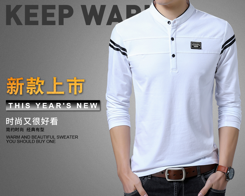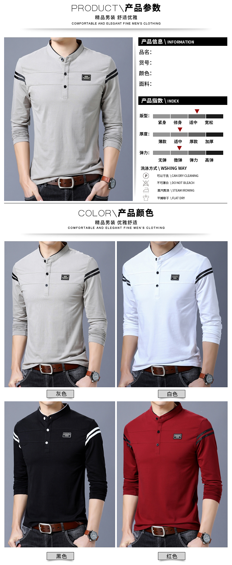商品名称:钱后长袖T恤男新品时尚春秋秋衣潮流简约打底衫纯色上衣休闲学生男装