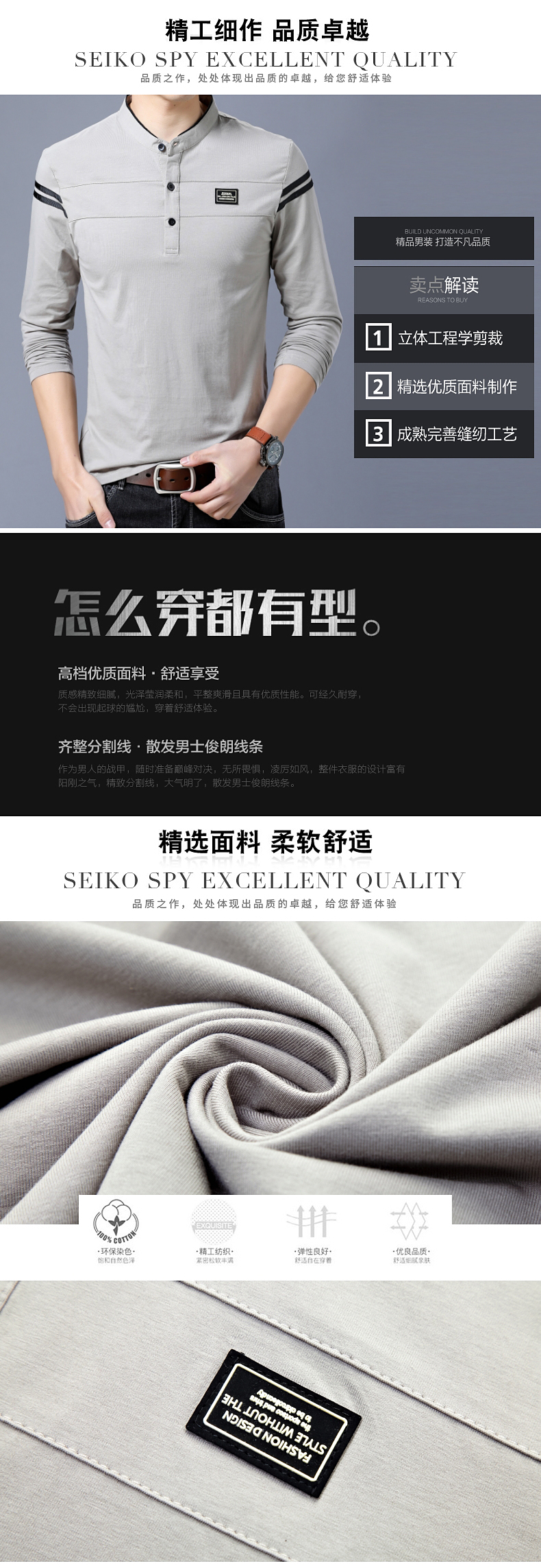 商品名称:钱后长袖T恤男新品时尚春秋秋衣潮流简约打底衫纯色上衣休闲学生男装